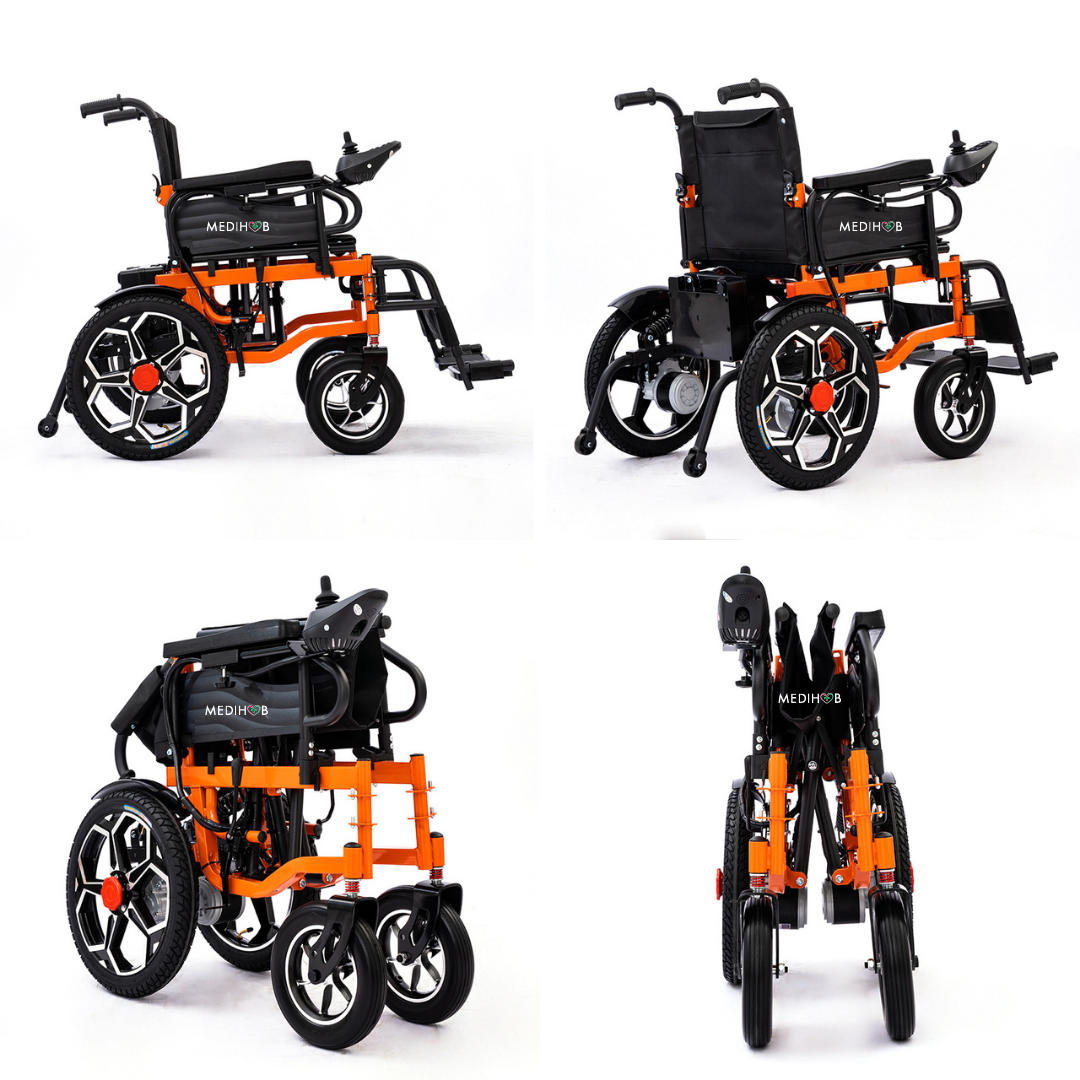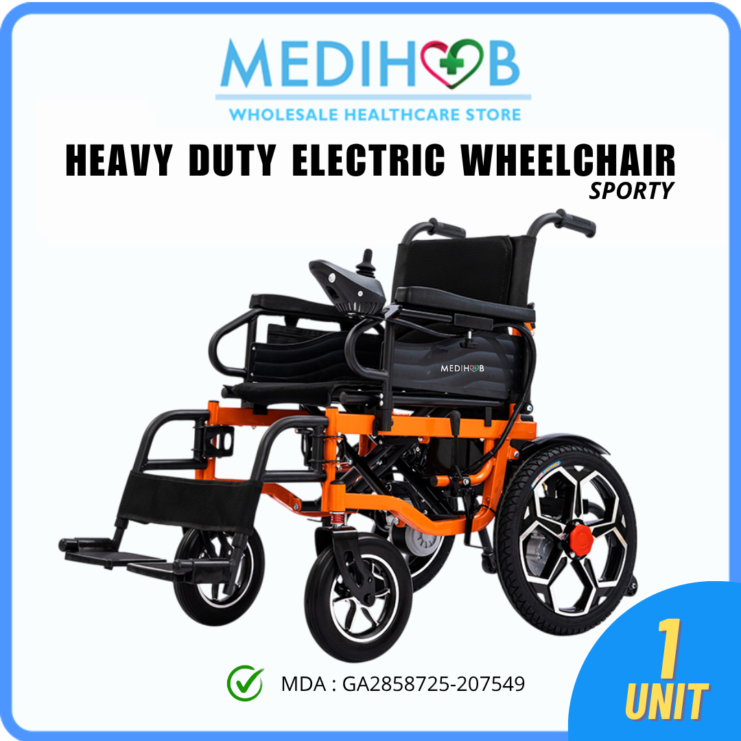 [ššš šššššššš] MEDIHUB Heavy Duty Electric Wheelchair Sporty Orange 6001A - 120KG - 150KG Max (EC08)