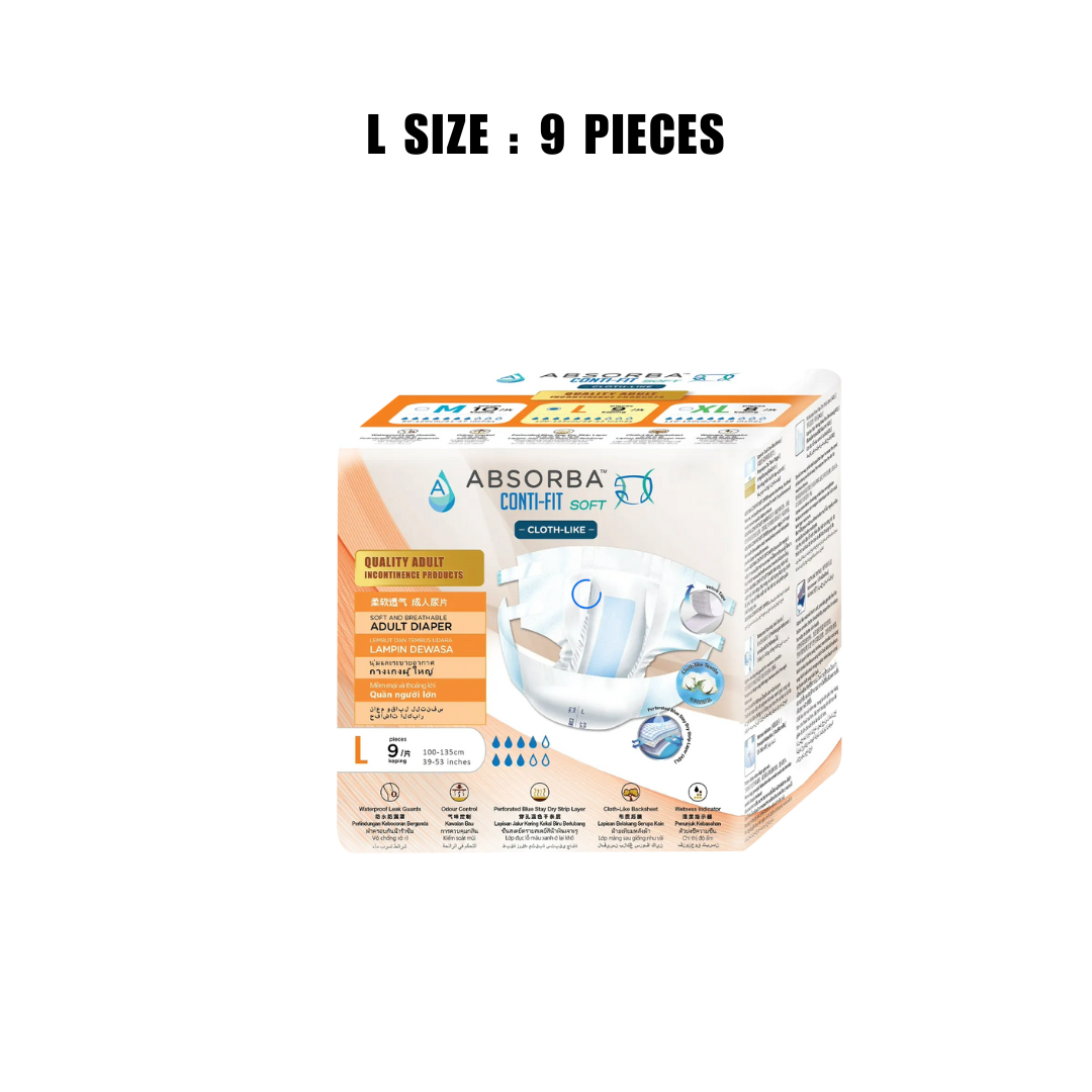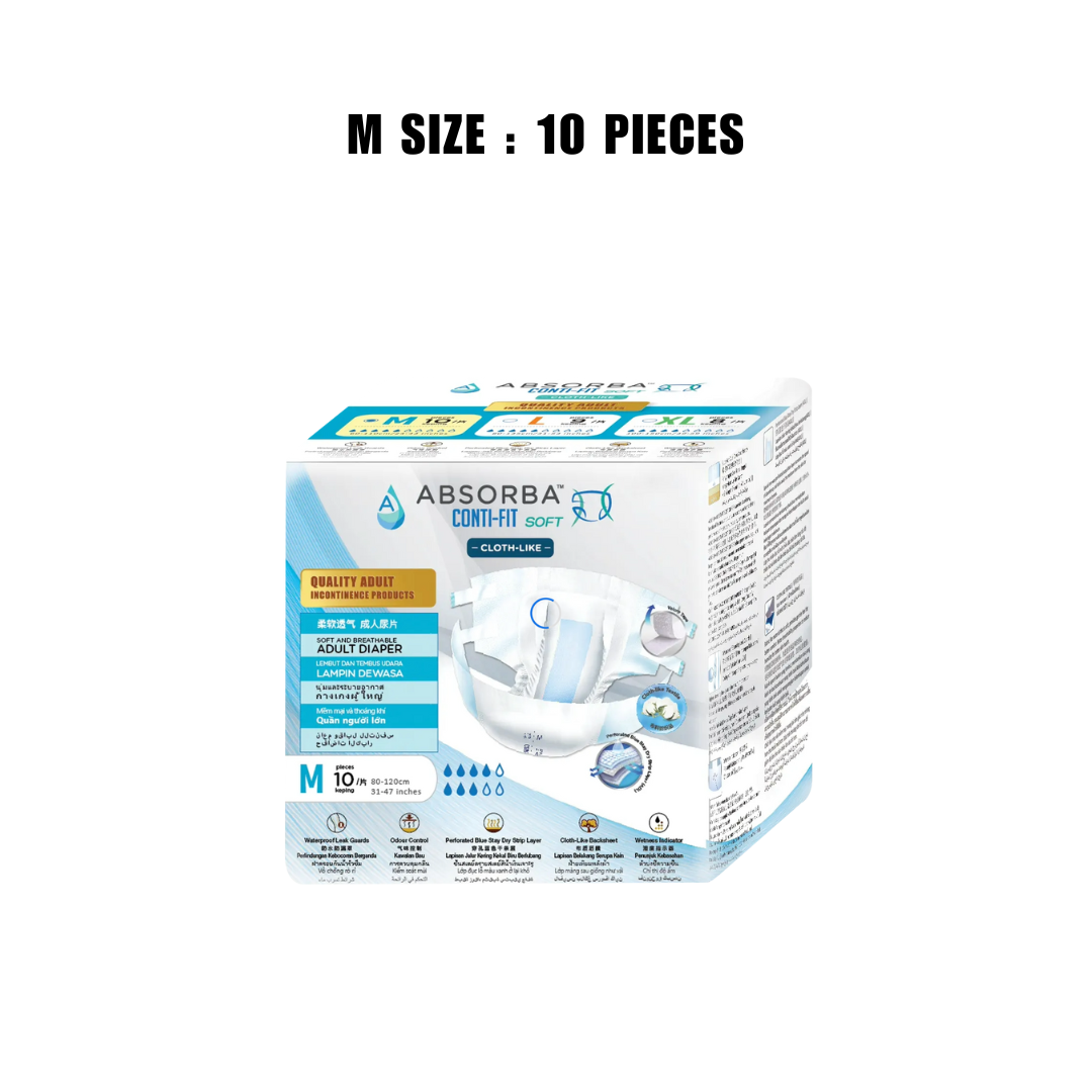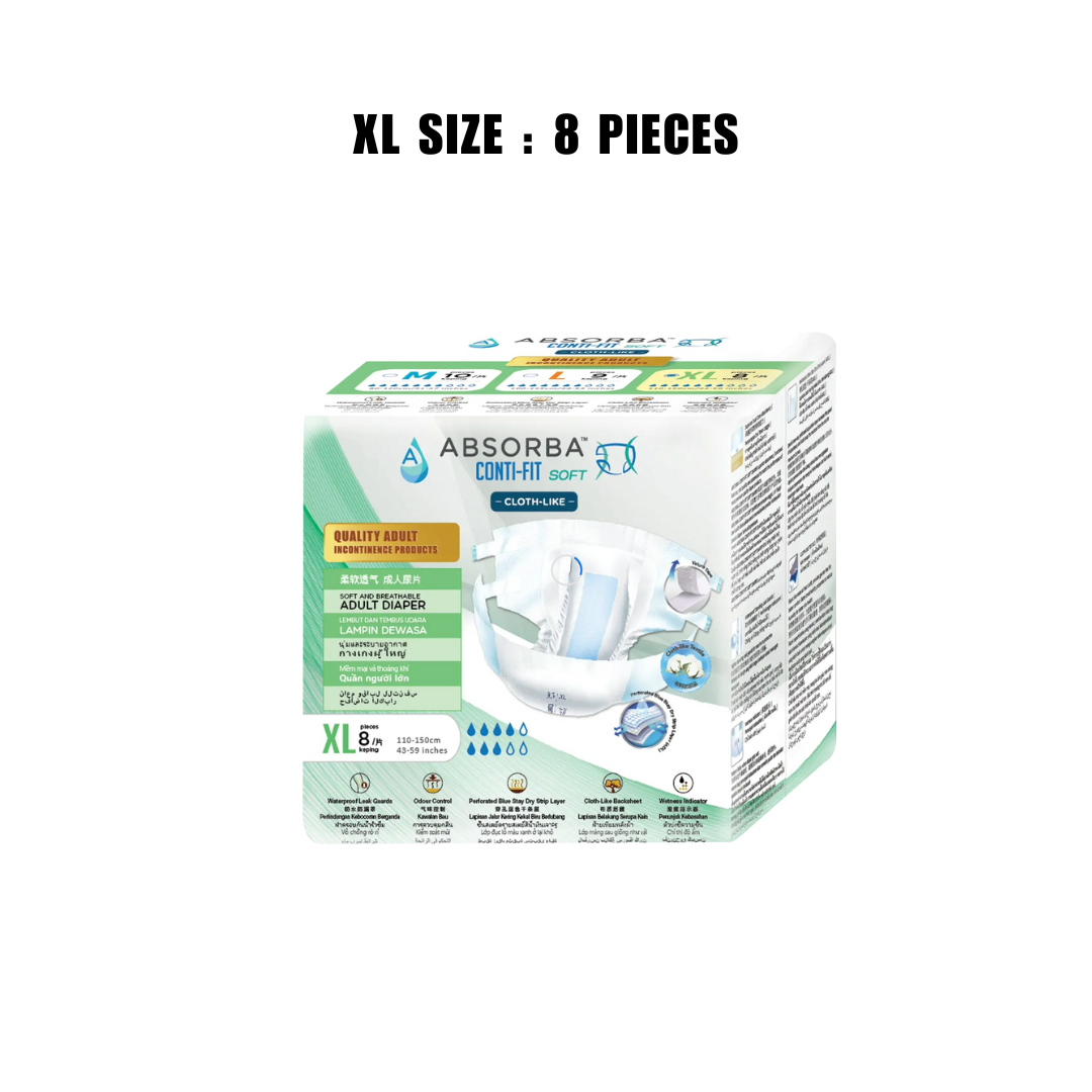 [Single Pack)Absorba Conti-Fit Soft Tape Adult Diapers Size M10/L9/XL8 Adult Incontinence Soft and Breathable