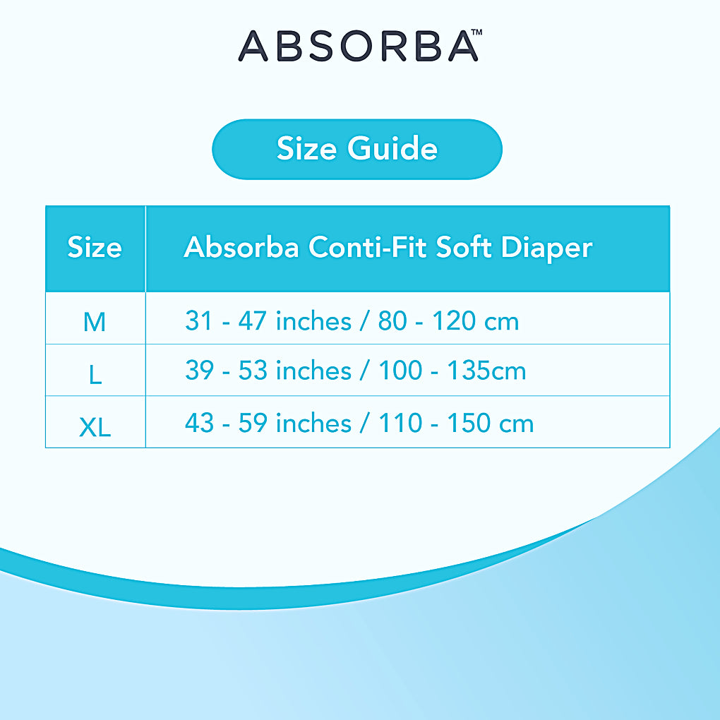 Enjoy comfortable and reliable protection for moderate incontinence with these soft, breathable diapers. Offering up to 4-5 hours of coverage, they keep your skin cool and dry. The contoured design ensures a secure fit, while the adjustable adhesive tabs make them easy to put on and adjust. Waterproof leak guards provide extra security, and the wetness indicator helps you know when it’s time for a change, Absorba Conti-Fit Soft Diapers deliver dependable protection and peace of mind.
